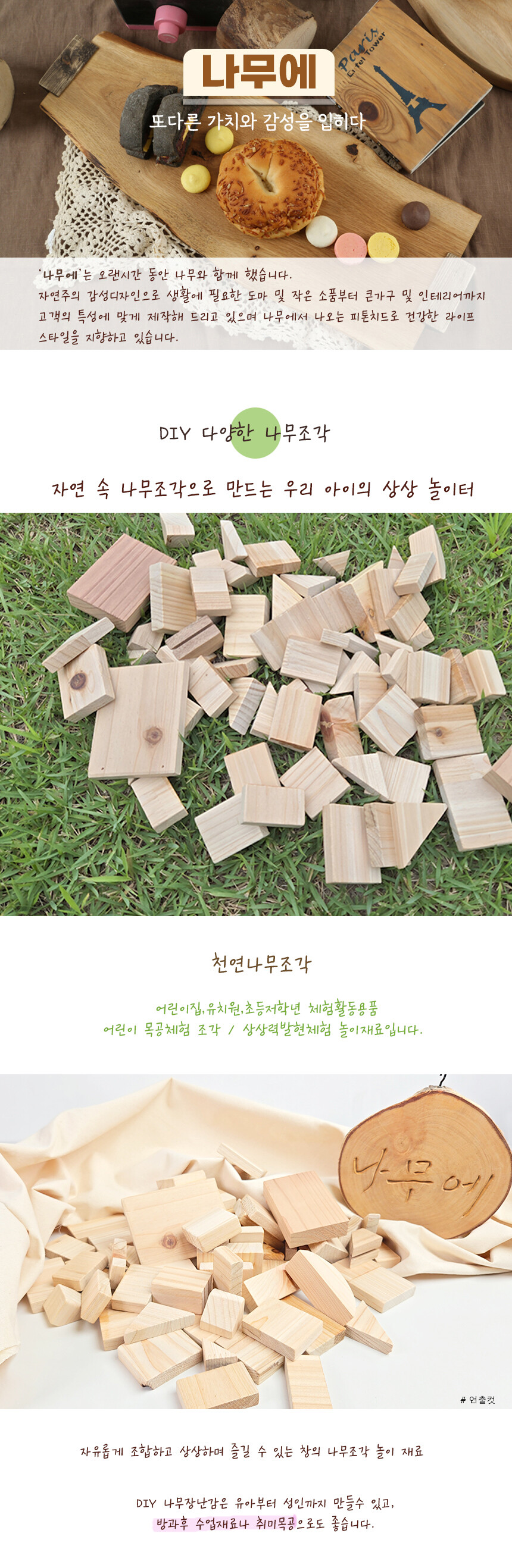 나무에 다양한 나무조각 창의적인 나무조각 놀이